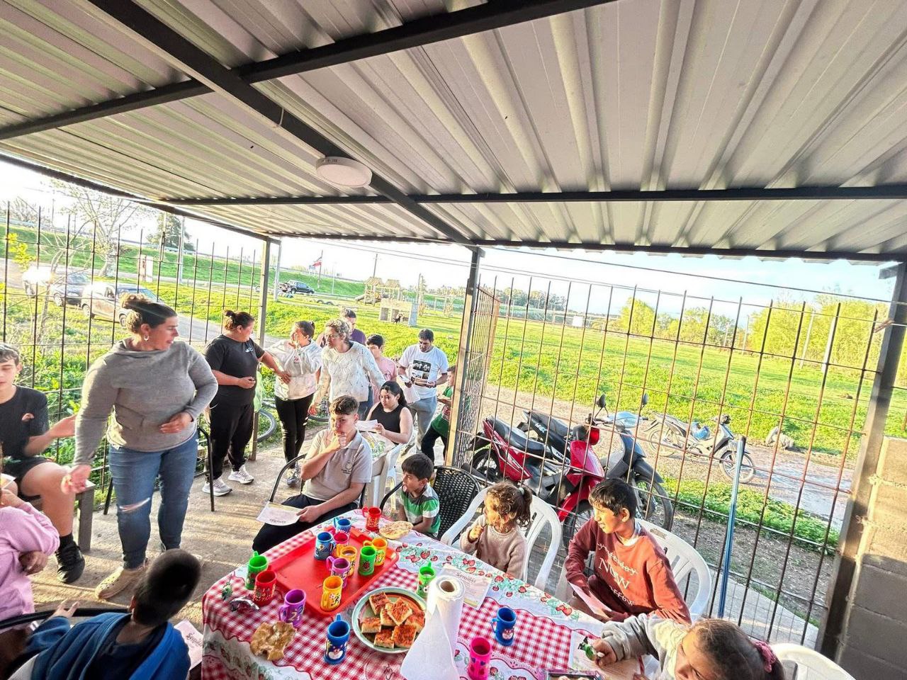 The activities take place on an open-air soccer field. In this setting, a group of volunteers organize sports, arts, and cultural activities, and also provide food such as milk, juice, fruit, bread, etc., as well as other types of meals when possible.